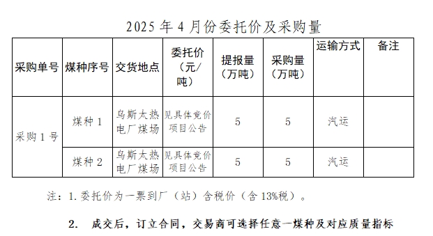 內(nèi)蒙古能源集團(tuán)有限公司計(jì)劃對(duì)所屬烏斯太熱電廠2025年4月市場(chǎng)煤采購(gòu)進(jìn)行電子專場(chǎng)交易,交易信息現(xiàn)對(duì)外公開發(fā)布,凡符合條件的交易商均可參加。