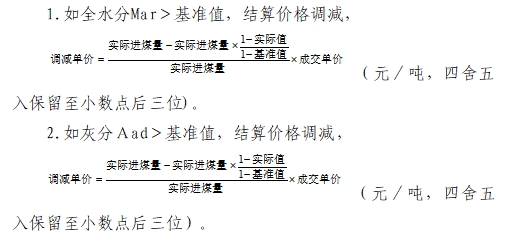 3.如(基準(zhǔn)值+0.2)<St,d≤(基準(zhǔn)值+0.4),以基準(zhǔn)值為基礎(chǔ),每增加0.01個(gè)百分點(diǎn),結(jié)算價(jià)格調(diào)減0.4元/噸。